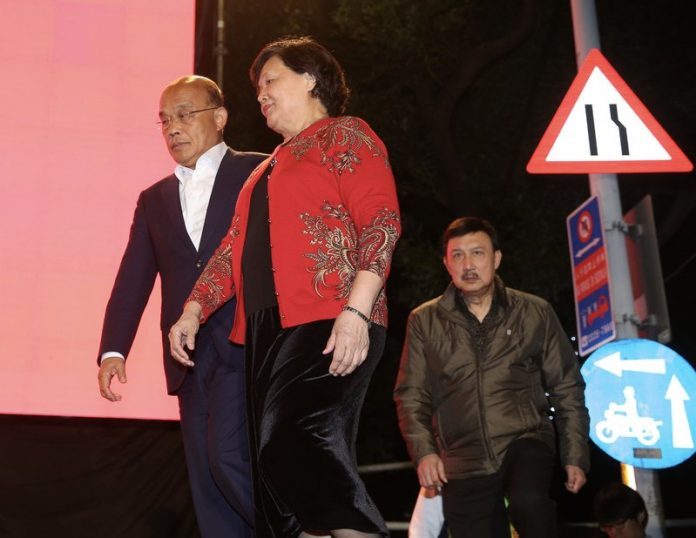 新北市長選舉開票結果大致確定,蘇貞昌大幅落後國民黨的侯友宜,他在接近8點時偕同夫人詹秀齡晚間主動發表談話,宣布敗選。