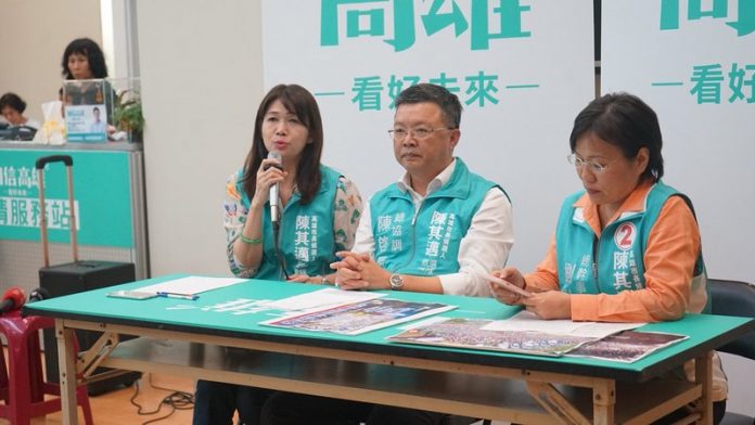 民進黨11日旗山的造勢活動後,陳啟昱在陳其邁市民總部臨時召開記者會,說明造勢成果並做選情分析。