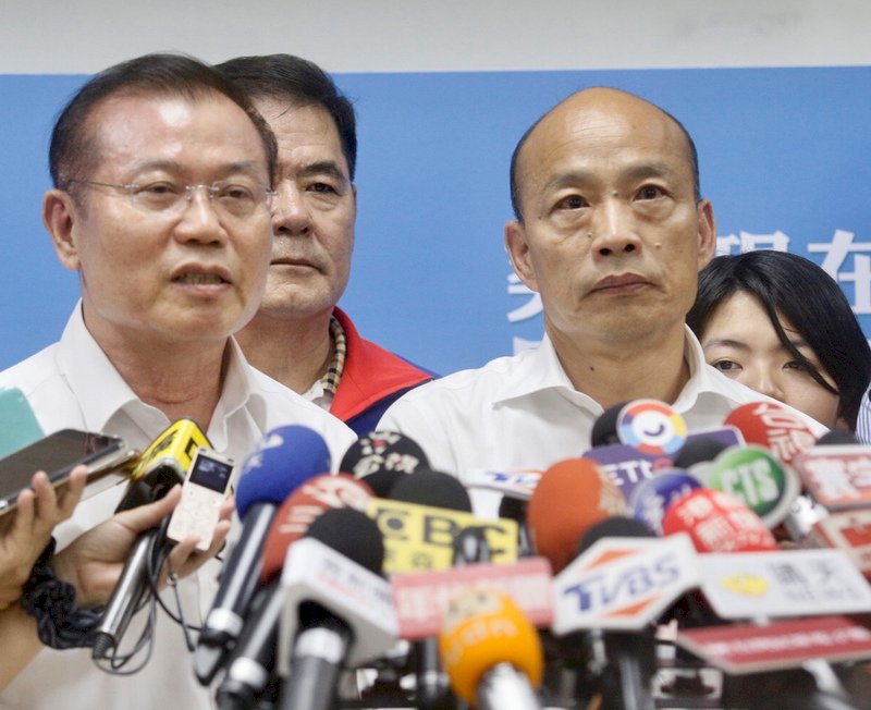高雄市近來發生多起街頭暴力事件,市長韓國瑜(右)19日到鳳山區進行市政行程受訪時說重話,展現對暴力零容忍立場。左為高雄市警察局長李永癸。(圖:中央社)