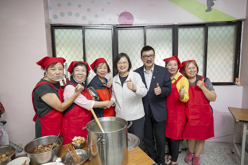 蔡英文總統3日前往三重與老人共餐時表示,過去她用3年時間把台灣基礎打好,現在基礎打好了,事情要一項一項做下去,總統當然也要連任,「蓋屋蓋一半,師傅不能換」。(圖:總統府Flickr)