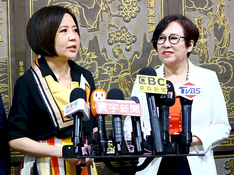 親民黨副總統參選人余湘(右)、發言人于美人(左)在板橋慈惠宮參拜後受訪 (央廣記者王照坤 攝)