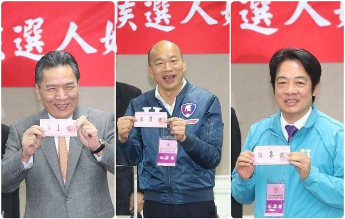 2020大選 總統大選號次今抽籤 宋楚瑜1號、韓國瑜2號、蔡英文3號 2019-12-09 11:00 600 Share FacebookLINETwitterLinkedinWhatsAppEmailPrint 總統大選號次今抽籤 宋楚瑜1號、韓國瑜2號、蔡英文3號(合成圖) 中央選舉委員會今天(9日)上午舉行第15任總統、副總統參選人號次抽籤,親民黨宋楚瑜及余湘的「瑜湘配」抽中1號,國民黨韓國瑜及張善政的「國政配」抽中2號,民進黨蔡英文及賴清德的「英德配」抽中3號。 中選會今天上午10時進行號次抽籤,國民黨正副總統參選人韓國瑜、張善政,以及民進黨副總統參選人賴清德親自出席,親民黨則由秘書長李鴻鈞代表抽籤。 新聞引據:中央社撰稿編輯:黃美寧 央廣新聞原文