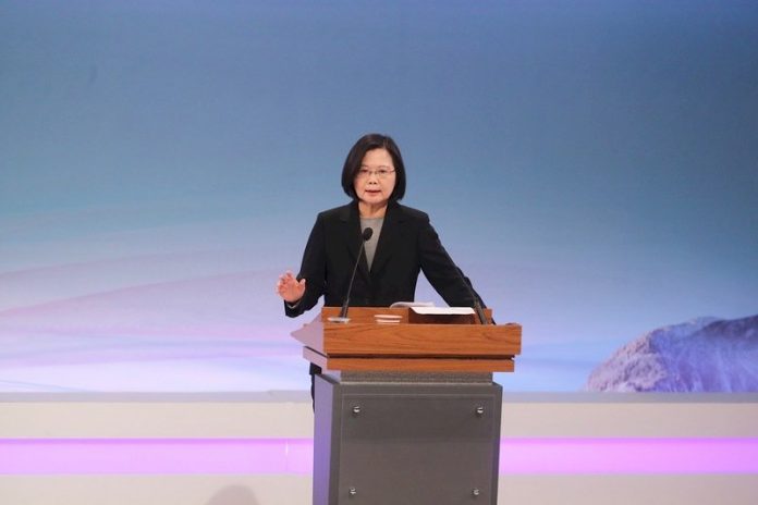 2020總統大選電視辯論會29日在公視登場,民進黨總統候選人蔡英文(圖)答覆提問。(圖:中央社)