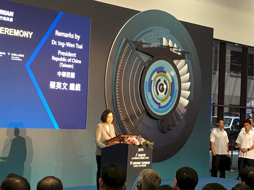蔡英文總統出席2019台北國際航太暨國防工業展、台灣無人飛行載具展開幕典禮。(謝佳興 攝)