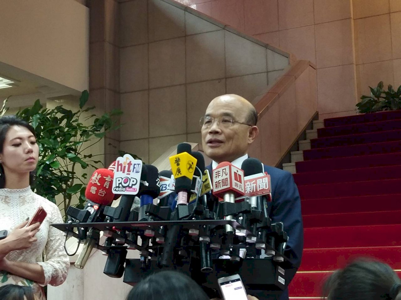 行政院長蘇貞昌26日被媒體詢問對此事的看法時,也幽默地用「晶晶體」回應指出,小女生這樣講是很可愛,但是一個總統候選人這樣講就不那麼可愛,會被美國人笑死。蘇貞昌說:『(原音)這就是一種流行,也隨著人的高興,譬如說我是很busy,因為我很多things要do,這個小女生講是很可愛,但是一個國民黨提名的總統候選人在美國人面前這樣講,我覺得好像不那麼可愛,會讓美國人笑死了。』