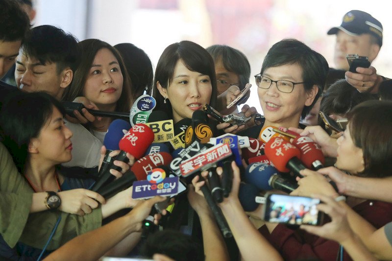 永齡基金會副執行長蔡沁瑜與台北市政府市政顧問蔡壁如,10日下午前往中選會了解總統選舉連署過程細節。(圖:中央社)