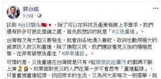 談災後重建 郭台銘批台灣只有藍綠扯爛污