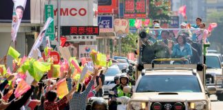 蔡總統新竹掃街高舉「我陪你養小孩」 年輕父母力挺
