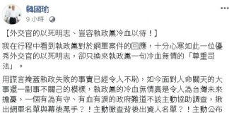 楊蕙如案 韓國瑜:蔡總統不能裝聾作啞 應公開說明