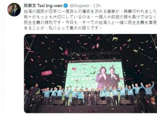 蔡總統勝選後推文 盼深化台日關係