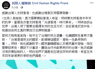 大選落幕 香港民陣:感謝台灣人支持香港