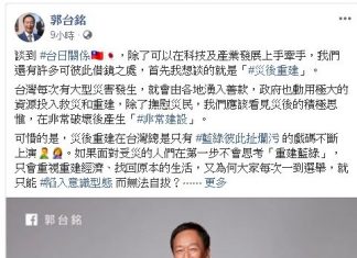 談災後重建 郭台銘批台灣只有藍綠扯爛污