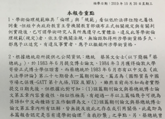 藍委檢舉蔡總統論文涉自我抄襲 教長:將依當時規範審理