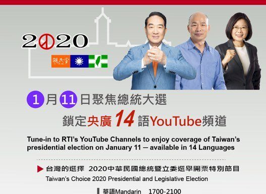 Đài RTI sẽ tường thuật trực tiếp cùng dịch song song lời phát biểu của người đắc cử Tổng thống Đài Loan