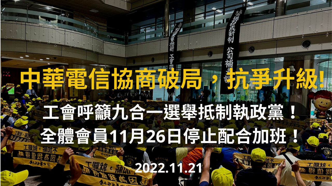中華電信工會決定11月26日九合一地方大選投票日,全體會員停止配合加班。(中華電信工會提供)