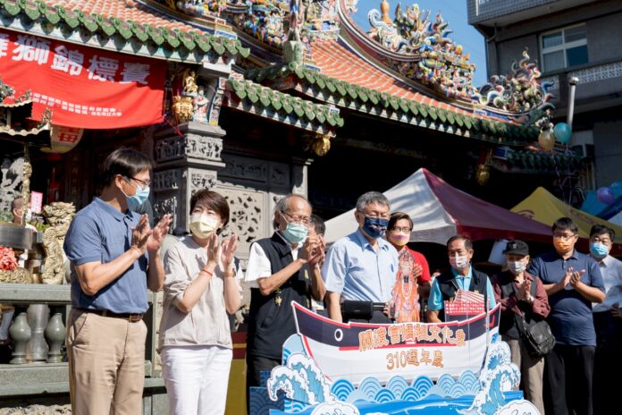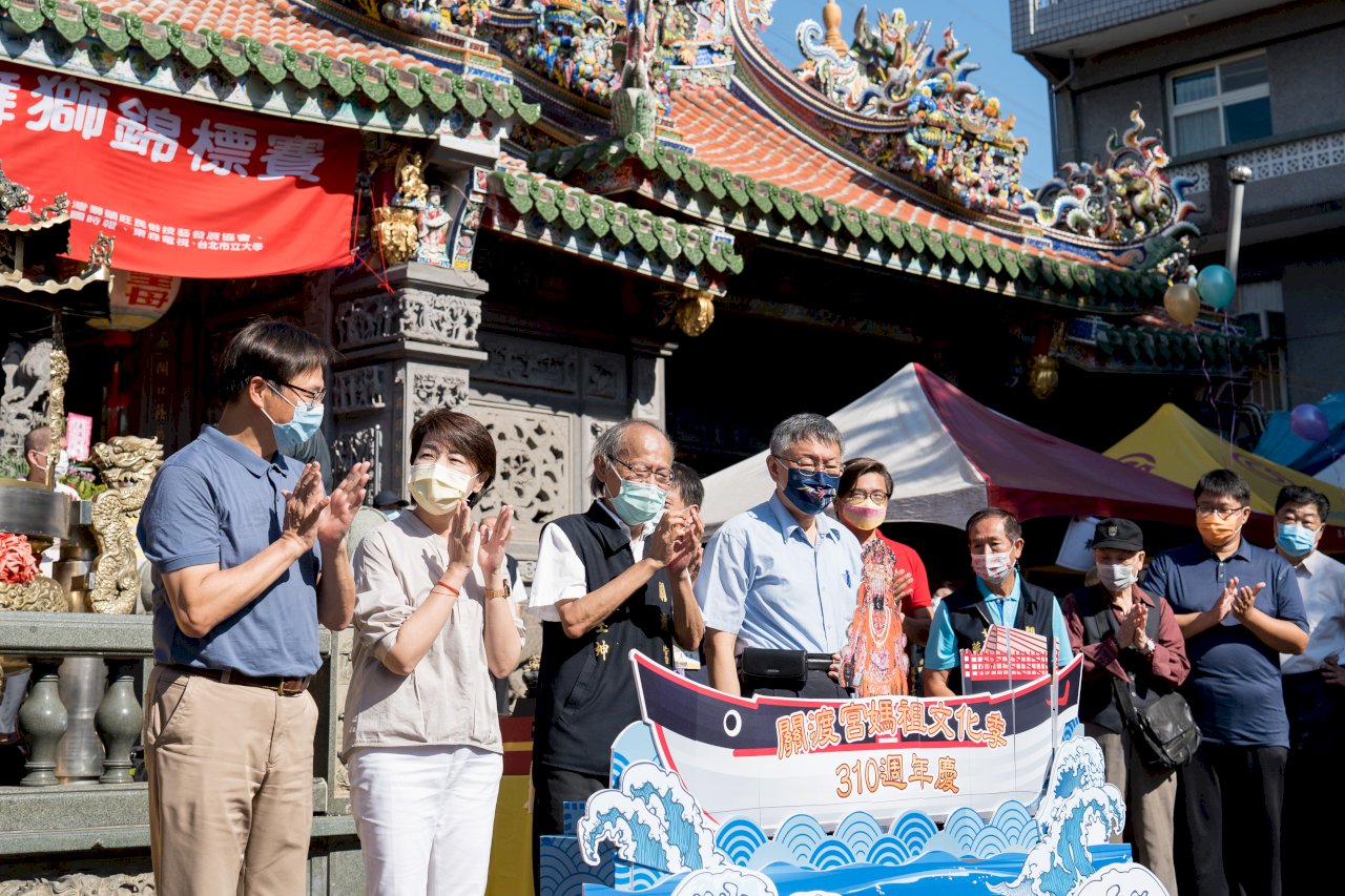 在傳出「新竹換台北」後,無黨籍台北市長參選人黃珊珊(左二)1日與台北市長柯文哲(左四)同台,受到關注。(黃珊珊競總提供)